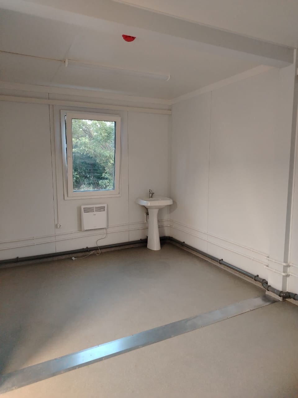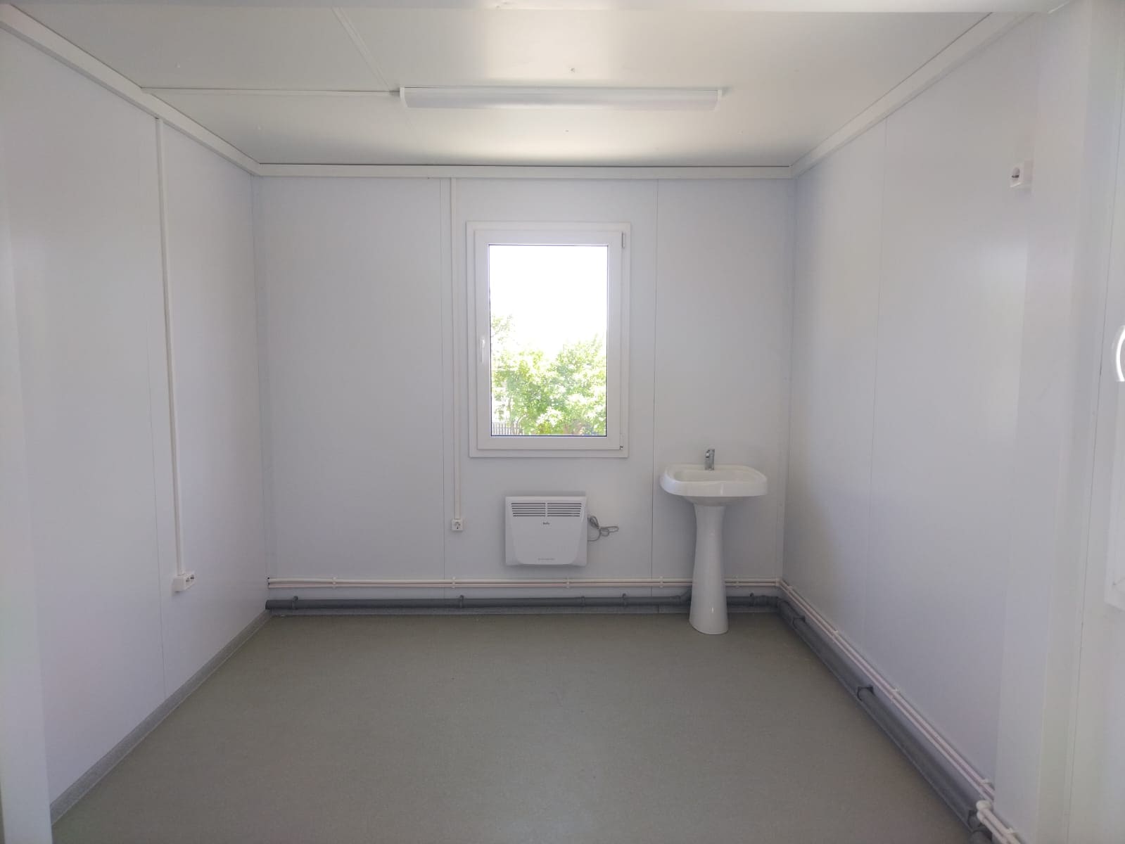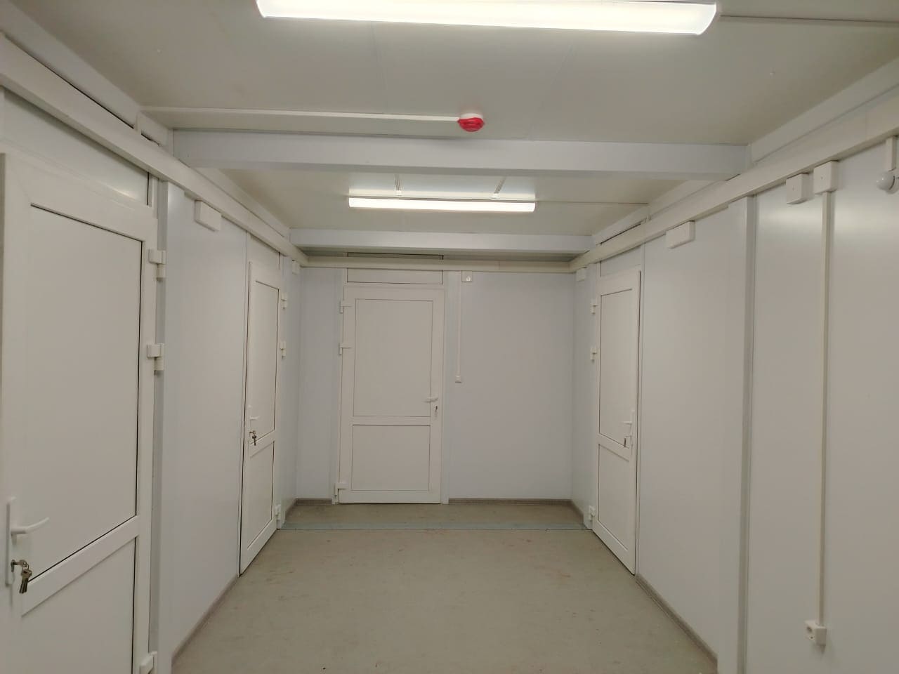 - дверь-панель межкомнатная ПВХ 1060х2100(2490) мм, (заполнение ПВХ сэндвич), с замком «ключ-ключ» и ручкой, наличники металлические с двух сторон, порог алюм. RAL 9003 – 5 шт.